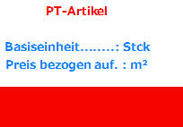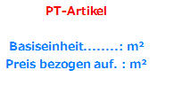 Basiseinheit = Stck Preis bezogen auf (P-Tab) = m² Artikel-PT-Stck-m² -