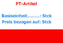Basiseinheit = Stck Preis bezogen auf (P-Tab) = Stck Artikel-PT-Stck-Stck -